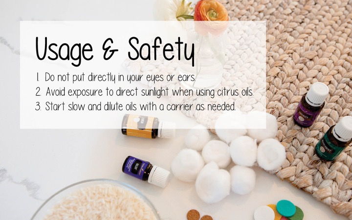 As always, when using essential oils on adults or children, you never want to put them directly into the eyes or ears. You also want to be aware of any blends that may contain citrus oils as these are photosensitive and should be avoided if being exposed to direct sunlight.